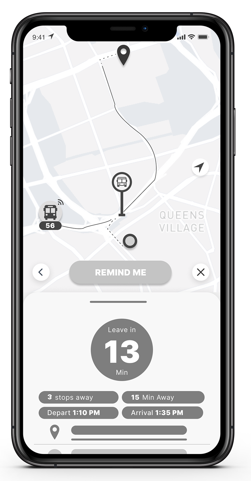 During this process, I was able to refine the app's information hierarchy. Based on user feedback I conclude that the most important information to communicate with the user was how many minutes they had left before they needed to start navigating to the bus stop.