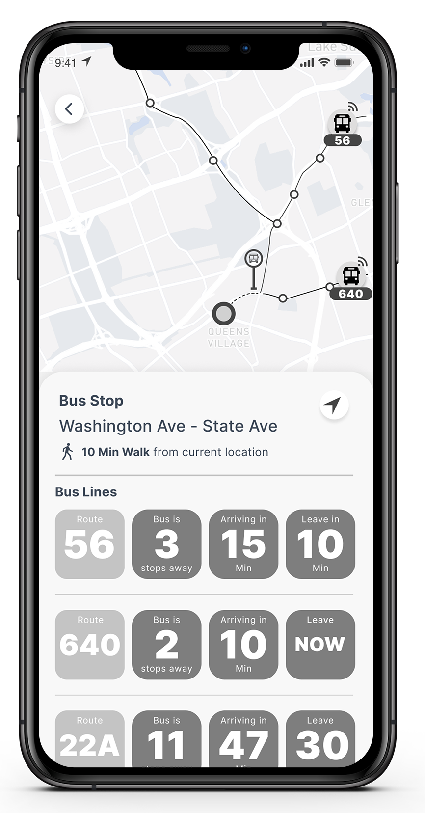 Ideate a public transit app for a Mid-Sized metropolitan city in the Midwest to serve thousands of commuters. Due to expansion, the agency has added several new buses and bus routes to their service. Many of these routes converge at one particular hub on Washington & State.