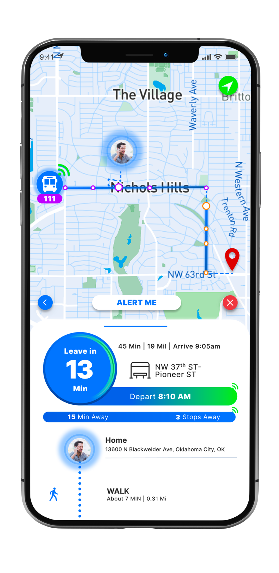 For example, I struggled in deciding what was more effective, "Leave in 13 Min," indicating the user needed to leave their current location and make their way to the bus stop in 13 min. Or, "Walk to the bus stop in 13 min". At this point, I decided to go with what I felt was the most straightforward and later validate or disprove my decision during the testing phase.