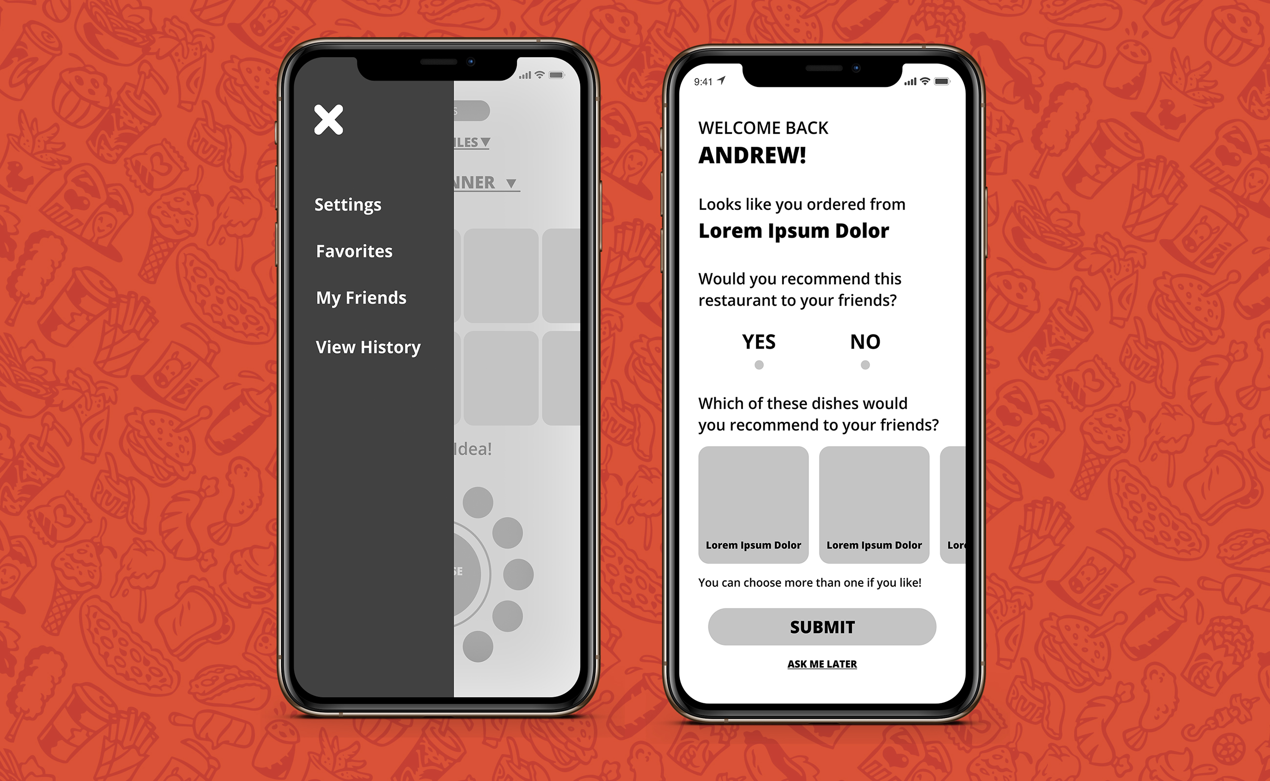 Another notable improvement at this phase of the ideation process is that after getting feedback from my client and colleagues one thing I did not design for was the ability for users to see their "view history". Meaning, if a user scrolls through three restaurant recommendations; there wasn't a functionality for them to be able to go back and view the previous options they were shown.